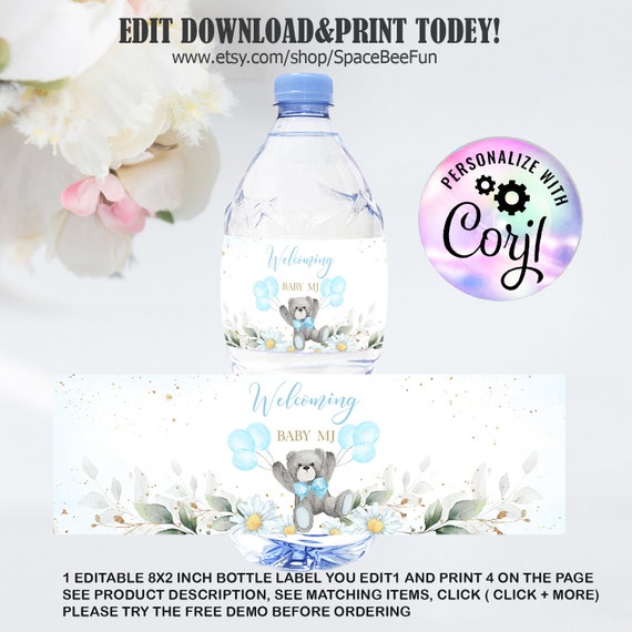 Baby boy water bottle labels free. It A Baby Boy Water Bottle Labels | Zazzle Zazzle's It A Baby Boy water bottle labels are great for parties, corporate events, and other fun get-togethers. Shop our selection right now! 25 Baby Shower Water Bottles Labels | Raspberry Swirls - Pinterest "** FRAMES ARE NOT INCLUDED IN THE PURCHASE PRICE AND ARE FOR DISPLAY PURPOSES ONLY** Nursery decor girl, boho deer nursery, nursery wall art deer, girl deer nursery, nursery room prints, baby room decor deer, deer print Nursery girl decor deer, nursery wall art girl, floral girl nursery decor, girl floral room decor, deer print, boho baby nursery - ** All prints are printed on high quality ... Free Online Water Bottle Label Maker | Canva Water bottle label sizes are typically 8 x 2 inches for 16 oz bottles and 8.25 x 1.75 inches for 8 or 12 oz bottles. Be sure you've settled on the right size before printing by cutting a mock-label from a piece of paper and holding it up against your bottle. Space Water Bottle Labels for Baby Boy Shower Party 16.9oz - Etsy This Labels item is sold by ArtPlusbyLea. Ships from United States. Listed on Jul 13, 2022
