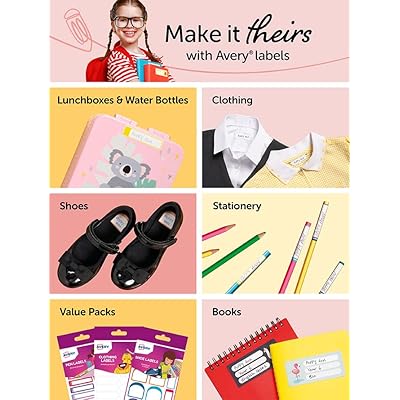 Avery Self Laminating Labels, waterproof name labels, lunchbox labels, water bottle labels, school labels, 86 x 17 mm, 24 Labels Per Pack, Pastel ...