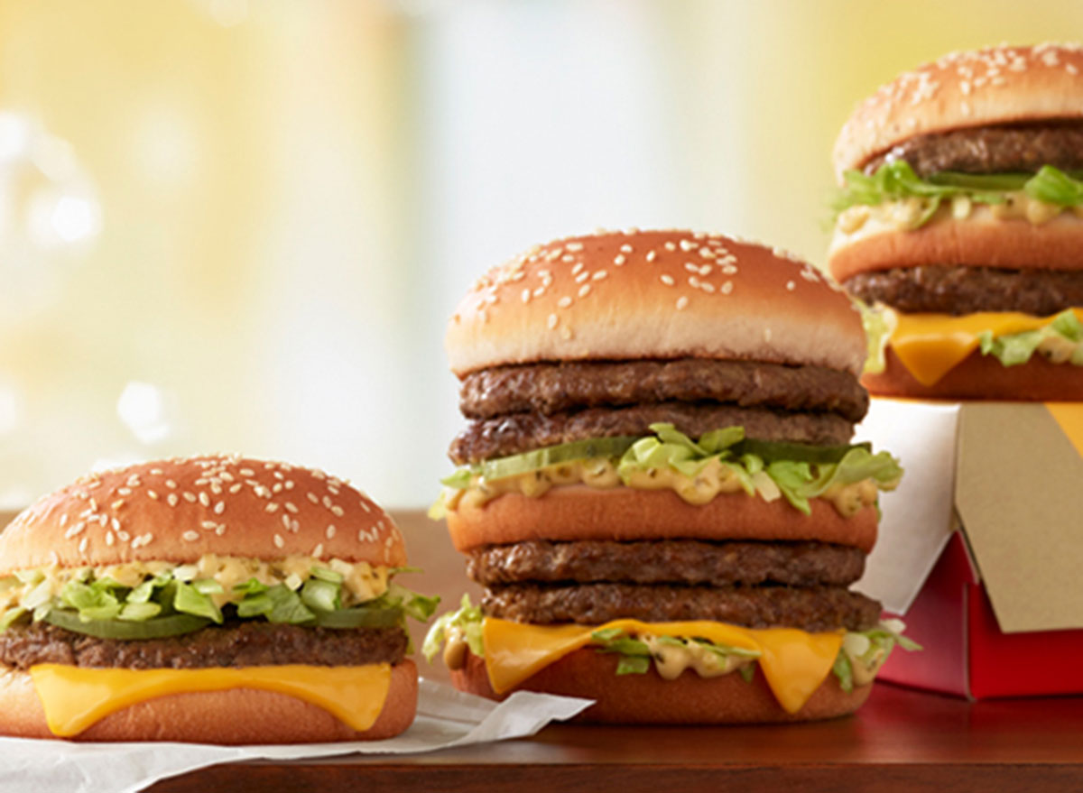 Big Mac® - 100% Beef Burger - McDonald's Big Mac® - 100% Beef Burger, Big Mac®, Two 100% beef patties, a slice of cheese, lettuce, onion and pickles. And the sauce. That unbeatable, tasty Big Mac® sauce. You know you want to. Nutritional Information, View Nutrition Summary, 0 Energy kJ (0 % RI) 0 Energy kcal (0 % RI) 0 fat (0 % RI) 0 saturated fat (0 % RI) 0 sugars (0 % RI)