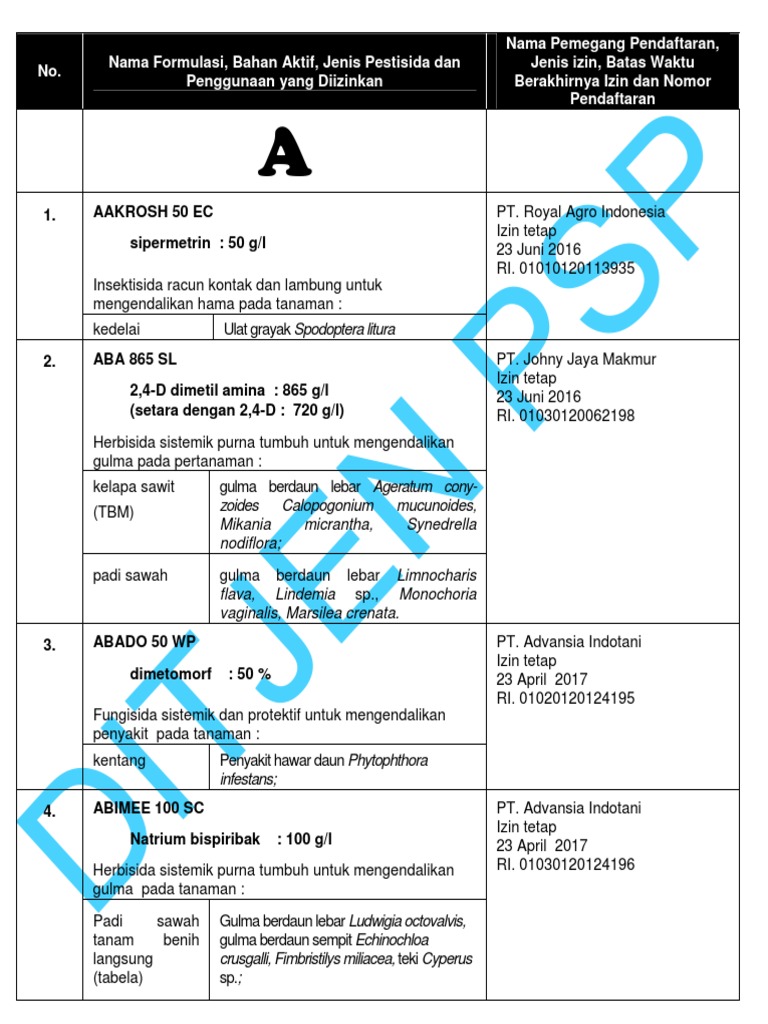 Pestisida Terdaftar Dan Diizinkan - 2012 PDF | PDF