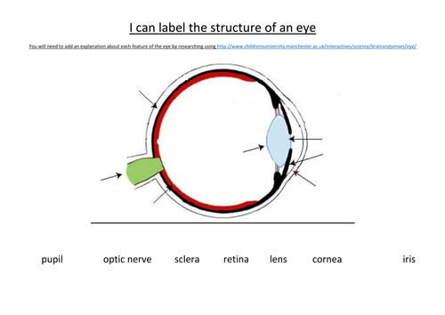 Label the Eye - The Biology Corner Label the Eye. Shannan Muskopf December 30, 2019. This worksheet shows an image of the eye with structures numbered. Students practice labeling the eye or teachers can print this to use as an assessment. There are two versions on the google doc and pdf file, one where the word bank is included and another with no word bank for differentiation.
