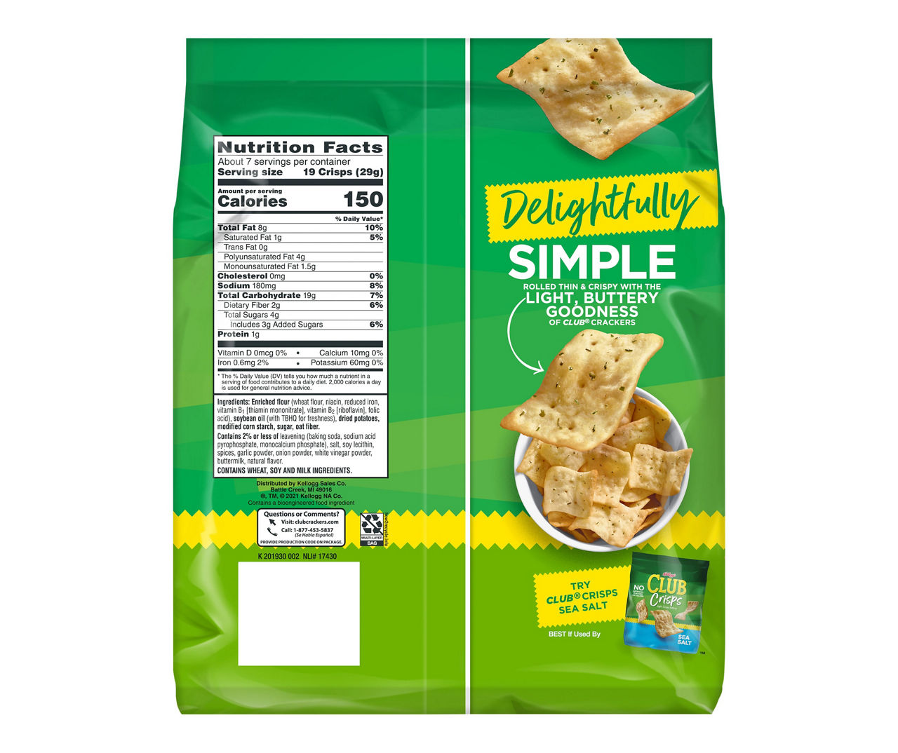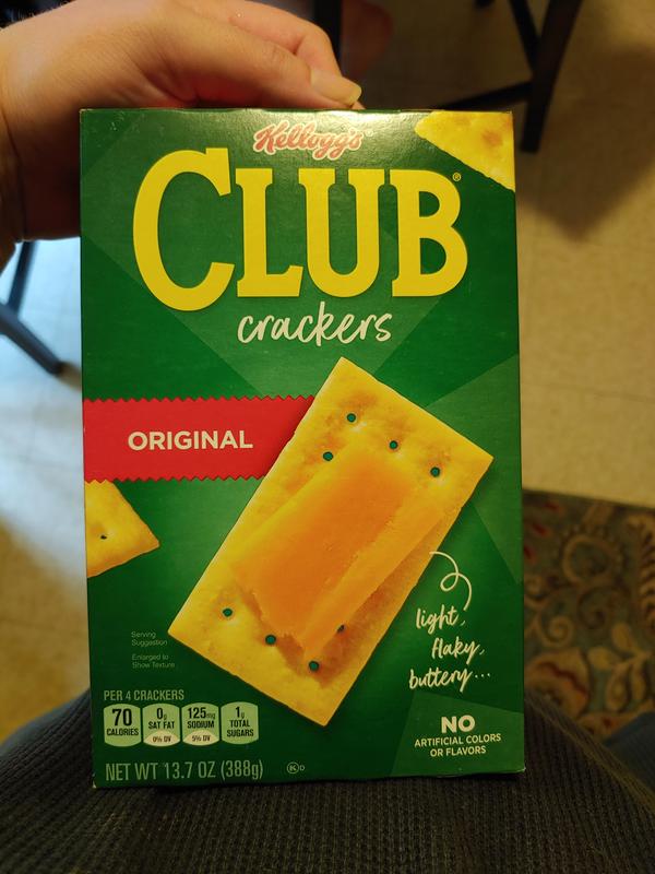 Kellogg's® Club® Original Crackers Kellogg's® Club® Original Crackers Kellogg's® Club® Original Crackers 3.8 (584) Write a review About this item: Details Nutrition Facts & Ingredients Where To Buy Highlights Flaky and buttery with a hint of salt and a melt-in-your-mouth texture. Pair them with your favorite topping or not, because they're so good, you can leave the topping behind!