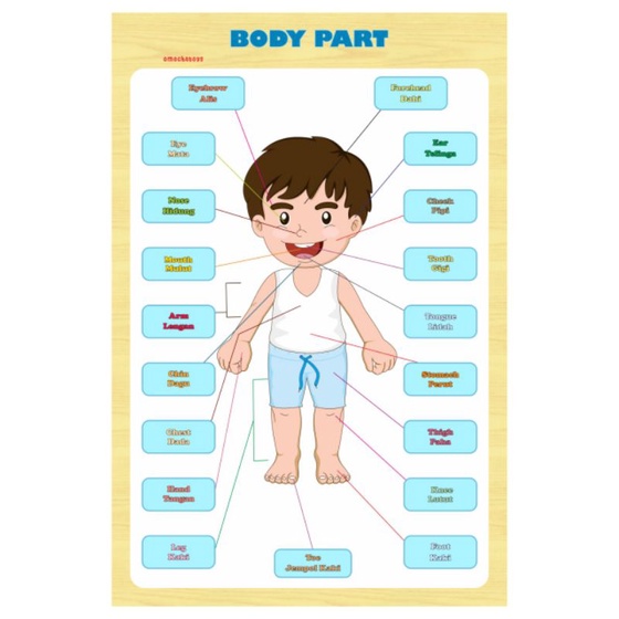 Spanish Language School Poster - Parts of the Body- Wall Chart for Home and Classroom - Spanish and English Bilingual Text
