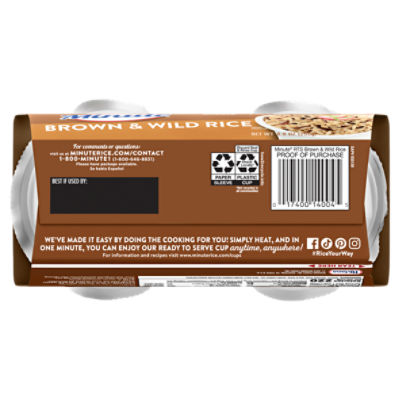 Minute Ready to Serve White Rice, Quick and Easy Cups, 4.4 oz, 2 Ct ... Fluffy pre-cooked white rice. Ready in one minute. Great for casseroles, soups, and puddings. Includes two single-serving microwaveable rice cups. Remove the film, heat in the microwave for 60 seconds, and enjoy. Cholesterol-free and made without preservatives. Non-GMO Project Verified. Find Minute Rice Cups Calories & Nutrition Facts - MyFitnessPal Rice Cups. Minute Rice, 1 Cup / 125G · Carbs: 43g · Fat: 4g ; Spanish Rice. Minute Rice Microwaveable Cups, 125 g 1Cup · Carbs: 41g · Fat: 4.5g ; Brown & Wild Rice ...